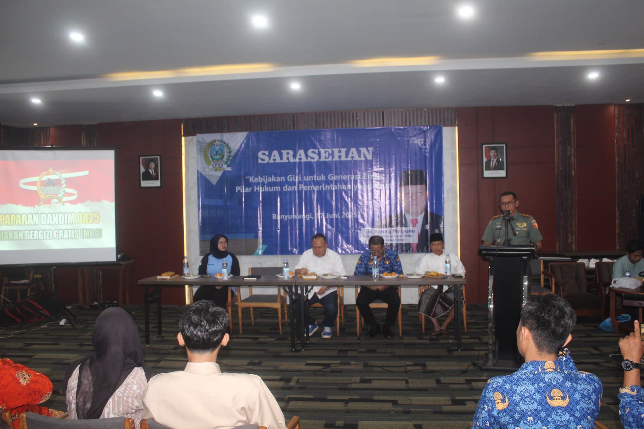 Dalam sambutannya Dandim 0825/Banyuwangi menyampaikan Pertemuan sarasehan ini menjadi ruang diskusi yang Produktif, Adaptif dan Inovatif mengenai pentingnya kebijakan gizi yang berkelanjutan dan berpihak kepada generasi muda sebagai fondasi bangsa di masa depan.