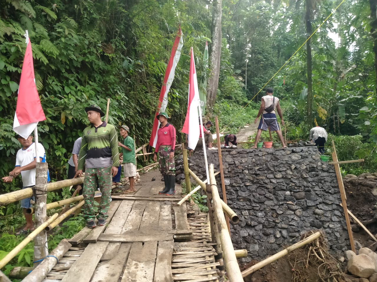 Di hari ke-6 ini, keringat tumpah untuk pekerjaan teknis yang krusial: pemasangan dan pengecoran siklop pondasi, pembesian kolom, pemindahan material batu pondasi, hingga pemasangan pondasi batu belah. Setiap palu yang berdentam, setiap ember semen yang dioper, mendekatkan dua dusun yang selama ini hanya bisa saling menatap di seberang arus. Jembatan ini bukan sekadar baja dan beton, ia adalah nadi baru yang akan menghubungkan Dusun Krajan dengan Gumukcandi, membuka akses warga menuju puskesmas, pasar tradisional, sekolah, dan kebun mereka dengan jauh lebih bermartabat.