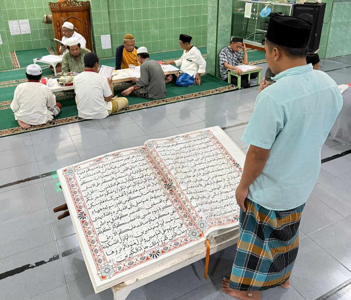 BANYUWANGI, Actanews.id – Sebuah karya luar biasa lahir dari balik jeruji Lembaga Pemasyarakatan (Lapas) Kelas IIA Banyuwangi. Tiga orang warga binaan berhasil merampungkan penulisan Al-Qur’an raksasa berukuran sekitar satu meter, yang kini digunakan secara rutin untuk kegiatan tadarus bersama selama bulan suci Ramadan di dalam lapas.