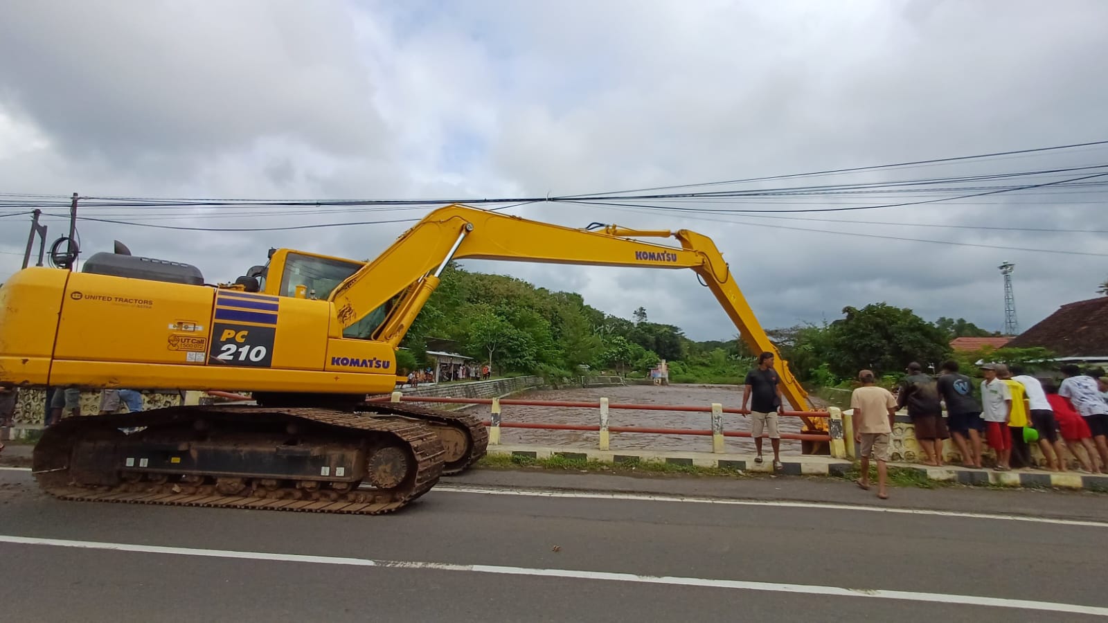 Alat berat telah diturunkan untuk mencegah penyumbatan arus air oleh material seperti batang kayu dan bambu yang terbawa arus, agar tidak tersangkut di bawah jembatan.