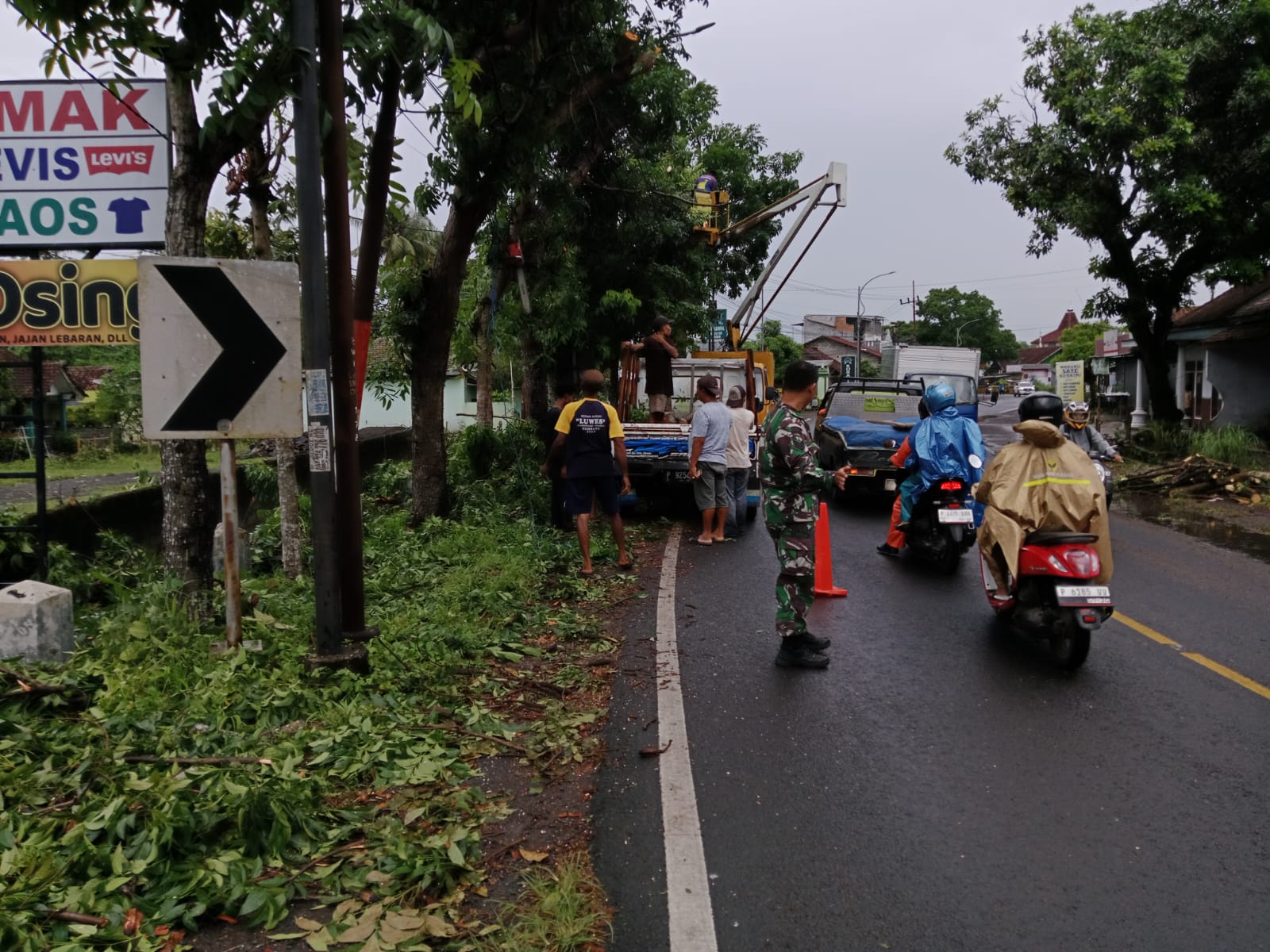 Kegiatan yang dimulai pukul 07.00 WIB itu melibatkan petugas dari Dinas Bina Marga bersama warga sekitar. Upaya pembersihan pohon dan ranting besar dilakukan untuk mencegah kecelakaan akibat tumbangnya pohon tua yang berada di tepi jalan raya.