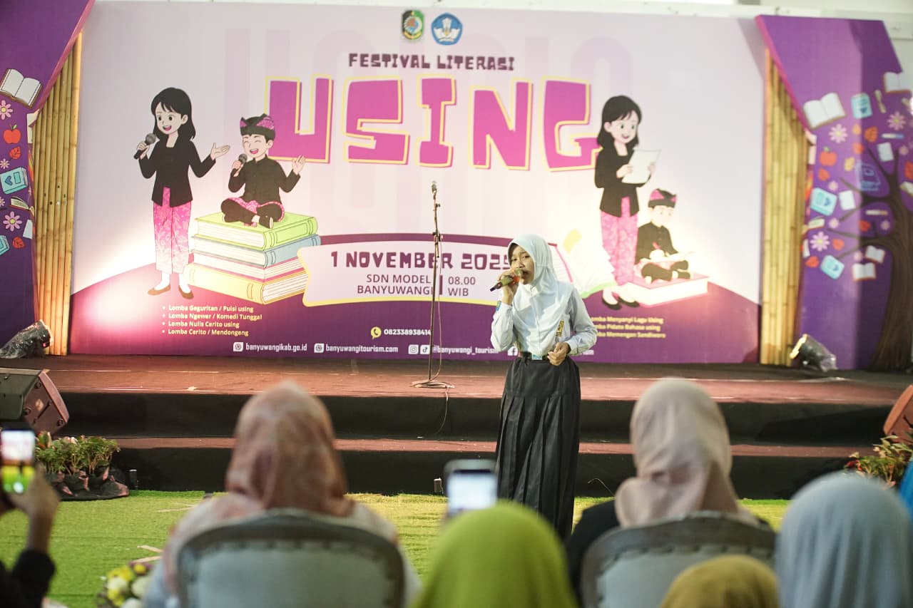 Festival Literasi Using yang berlangsung pada 1 November 2025 lalu ini diikuti 400 pelajar tingkat SD-SMP se-Banyuwangi. Kegiatan yang memasuki tahun ke-5 pelaksanaan ini melombakan tujuh kategori. Yakni Nulis Aksara (Menulis Kalimat Using), Tulis Cerpen, Moco Geguritan (Baca Puisi), Nembang (Menyanyi), Ngewer (Stand Up Comedy) dan Ndongeng (bercerita). Khusus untuk kategori SD, lomba ditambah satu kategori yakni Memengan Sandiworo (Bermain Sandiwara).