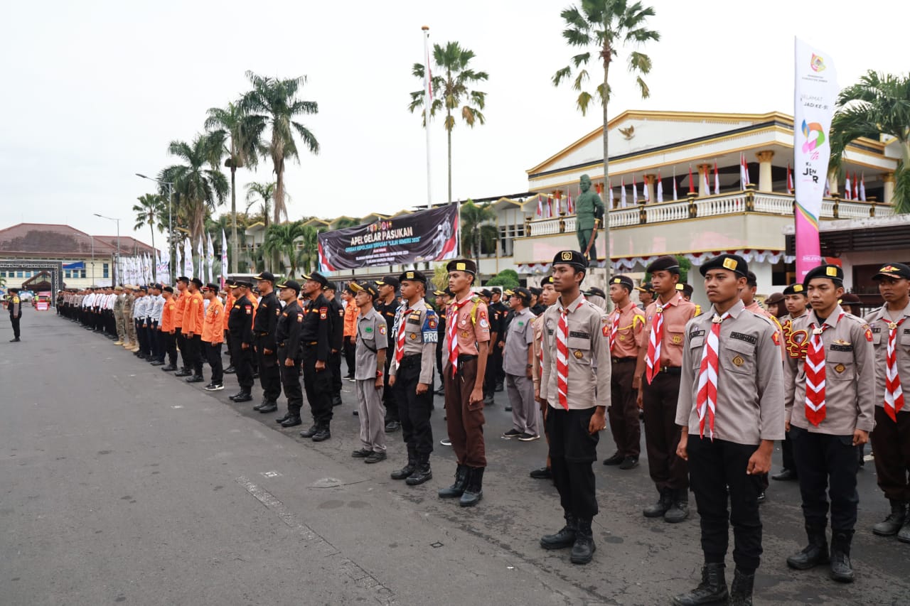 Jember, Actanews.id  – Polres Jember menggelar Apel Gelar Pasukan Operasi Lilin Semeru 2025 sebagai bentuk kesiapan pengamanan perayaan Natal 2025 dan Tahun Baru 2026. Apel yang digelar di Alun-alun Kabupaten Jember ini dipimpin langsung oleh Kapolres Jember AKBP Bobby A. Condroputra.