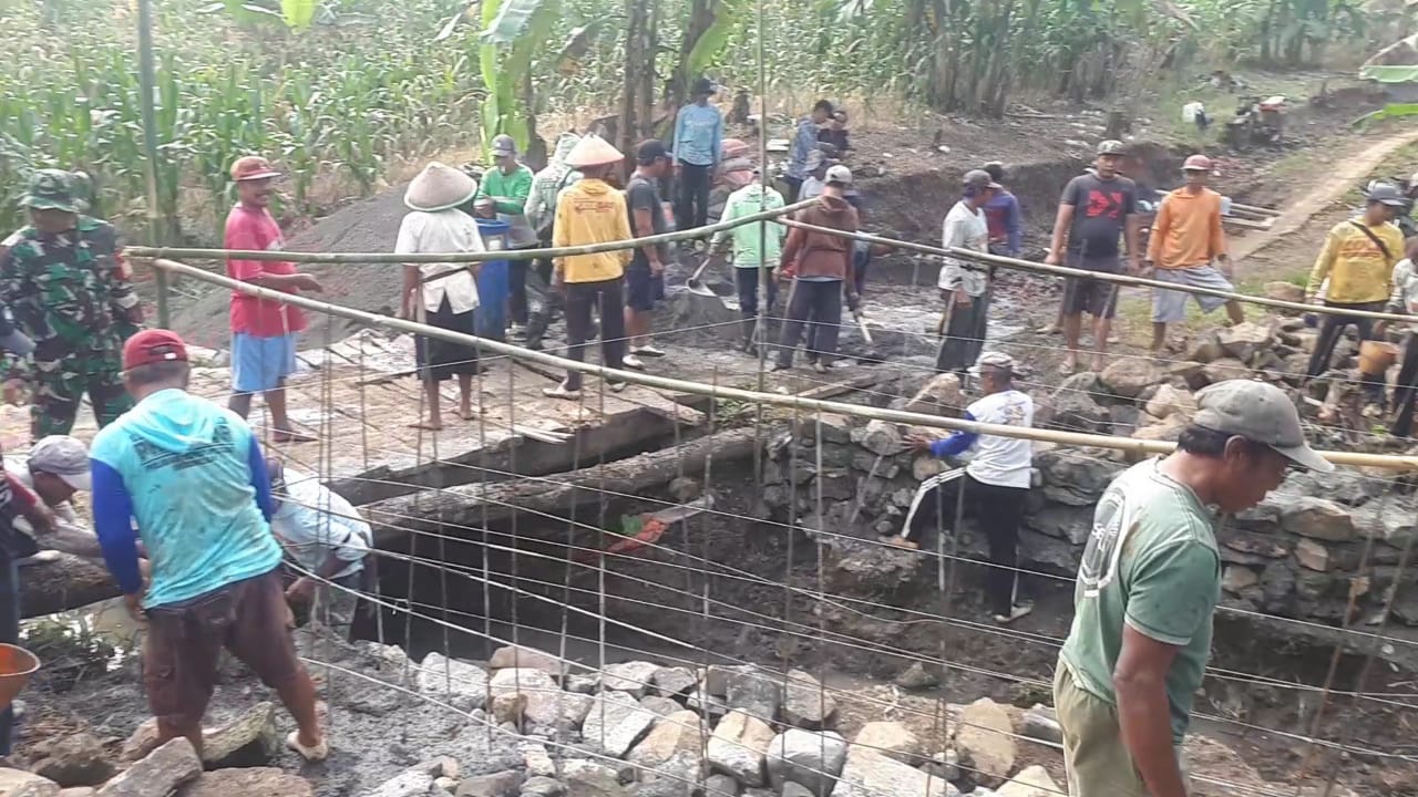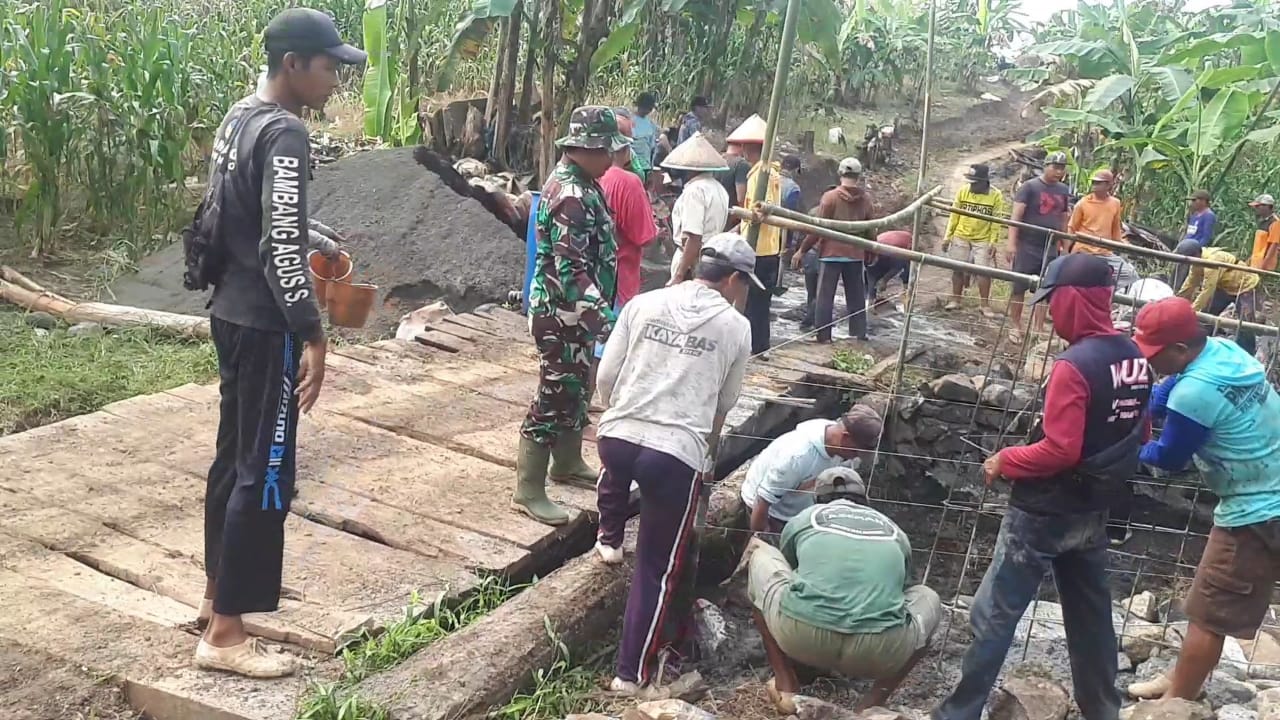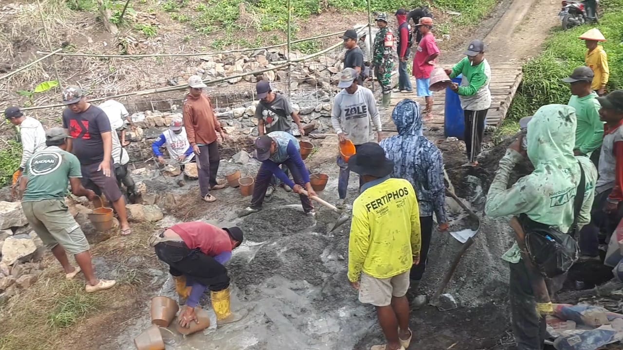 Gotong Royong Membangun Jembatan: Semangat Produktif dan Adaptif Masyarakat Sumbermanggis Bersama Babinsa Barurejo