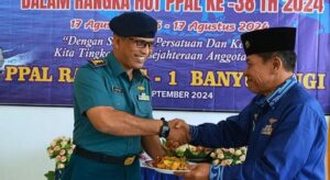 BANYUWANGI, Actanews.id – Dalam rangka memperingati Hari Ulang Tahun (HUT) Persatuan Purnawirawan Angkatan Laut (PPAL) ke-38 tahun 2024, Komandan Pangkalan TNI Angkatan Laut (Danlanal) Banyuwangi Letkol Laut (P) Hafidz, M.Tr.Opsla menghadiri Acara Tasyakuran yang diselenggarakan oleh PPAL Rayon Banyuwangi di Aula TMP Wisma Raga Satria, Kelurahan Taman Baru, Kecamatan/Kabupaten Banyuwangi. pada Rabu (04/09/2024).
