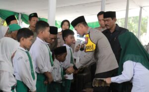Tidak hanya memberikan motivasi, Kapolres Jember juga menunjukkan kepeduliannya dengan memberikan santunan kepada anak yatim yang hadir dalam acara tersebut.