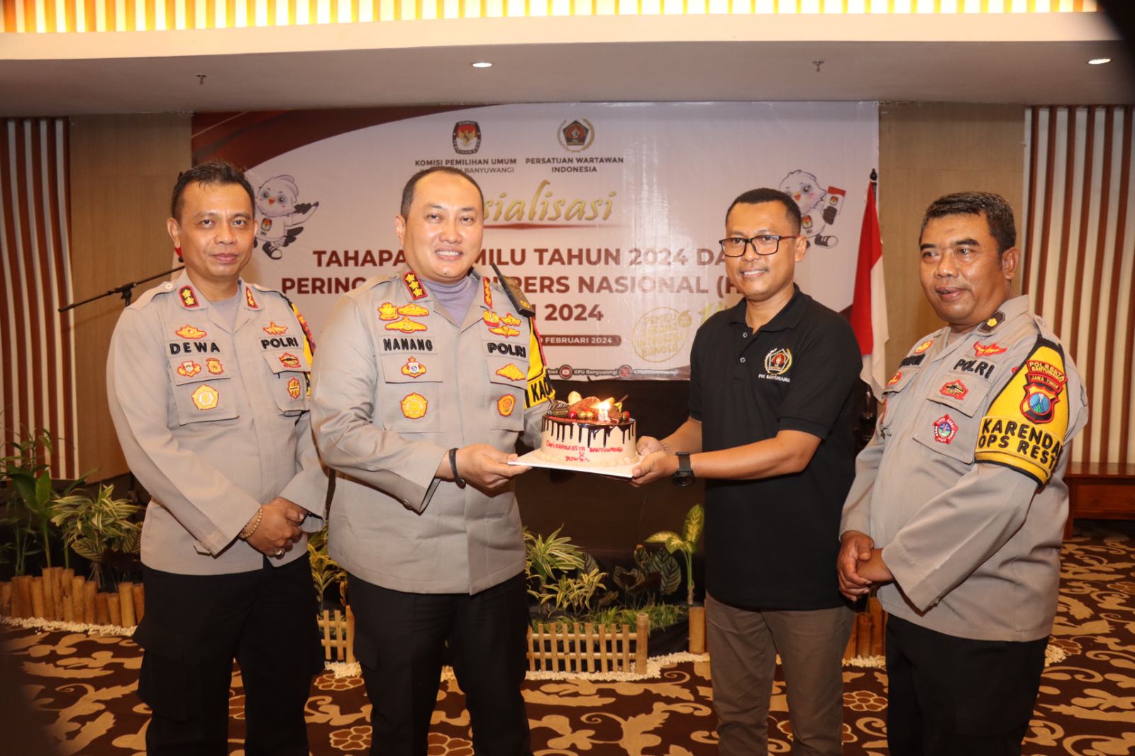 Banyuwangi, Actanews.id- Kapolresta Banyuwangi Kombes Pol Nanang Haryono mengajak peran serta media menjadi bagian dari cooling system dalam Pemilu serentak 2024. Demikian disampaikan Kapolresta dalam safari media dalam rangka peringatan Hari Pers Nasional di Kabupaten Banyuwangi, pada Jumat siang (9/2/2024).