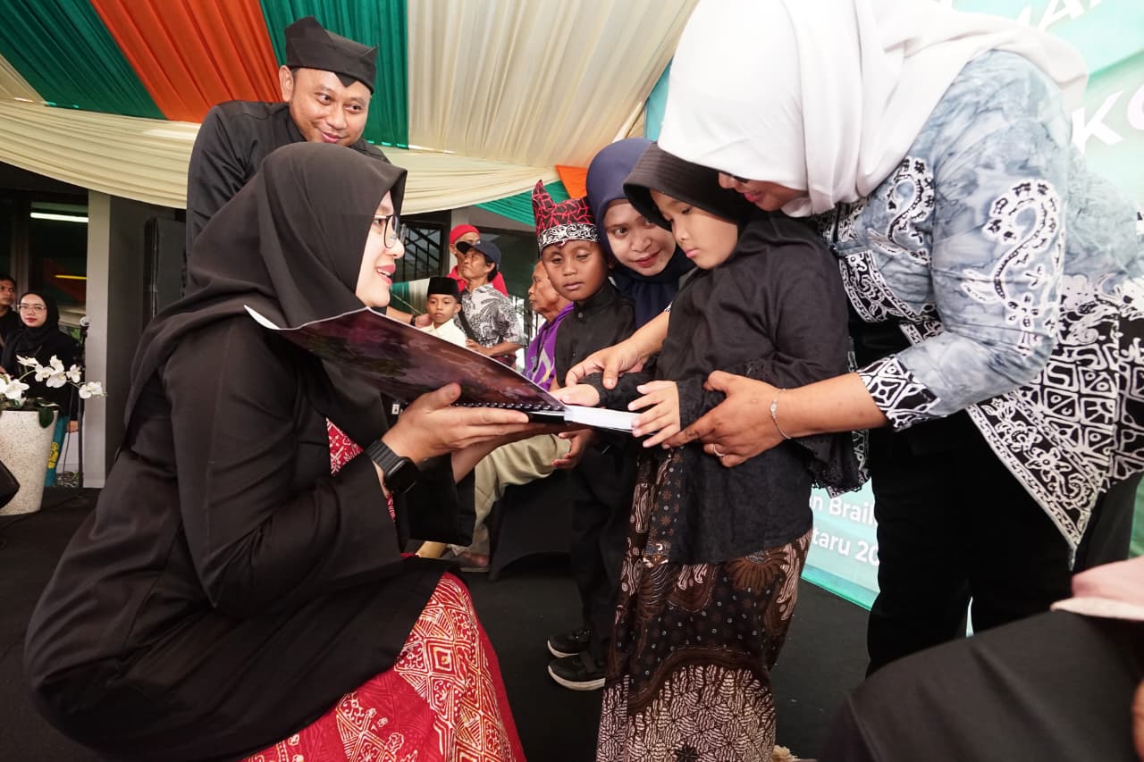Terdapat 20 kaki palsu, 24 Al-Qur’an Braille, dan 4 buku braille yang diserahkan kepada disabilitas. Mereka adalah anak-anak berkebutuhan khusus, baik yang mengalami amputasi kaki maupun tuna netra.