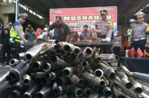 “Kegiatan pemusnahan untuk menurunkan angka Laka Lantas. Selain itu juga banyaknya pengaduan dari masyarakat terkait dengan bisingnya penggunaan knalpot brong,” terang AKBP Dewa. (**)
