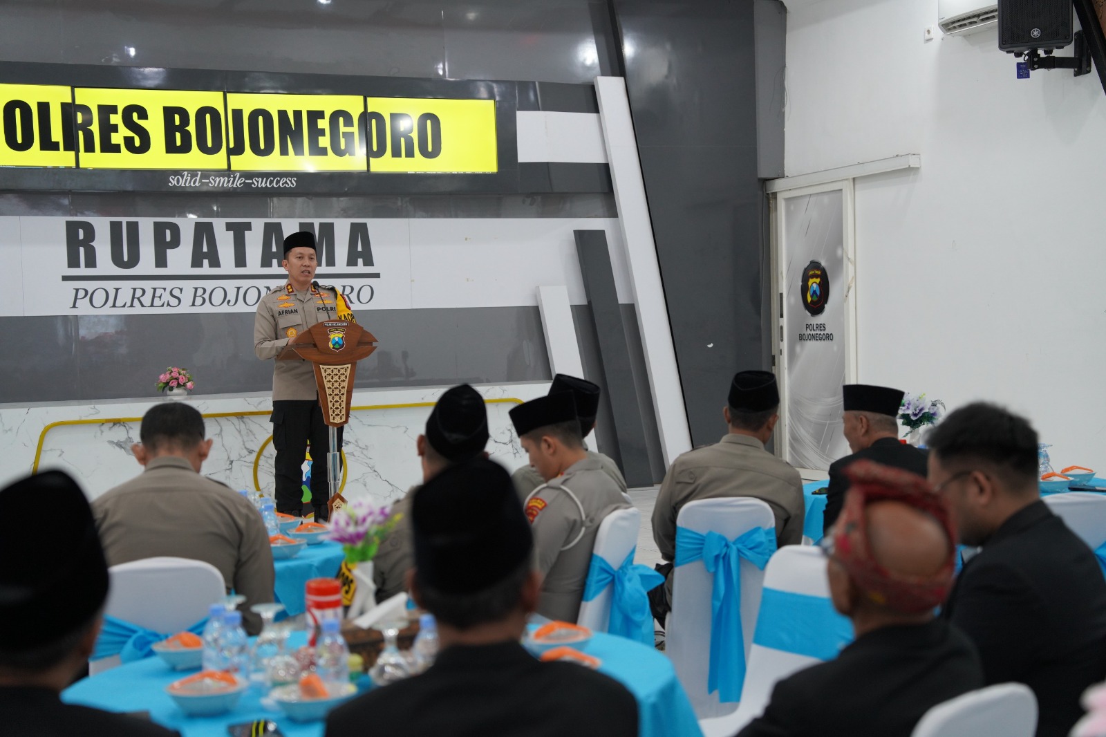 “Kondisi wilayah yang aman dan kondusif tidak terlepas dari peran para tokoh agama yang terus menyampaikan pesan damai kepada umat,” ujar AKBP Afrian di Bojonegoro, Sabtu (7/3/26).