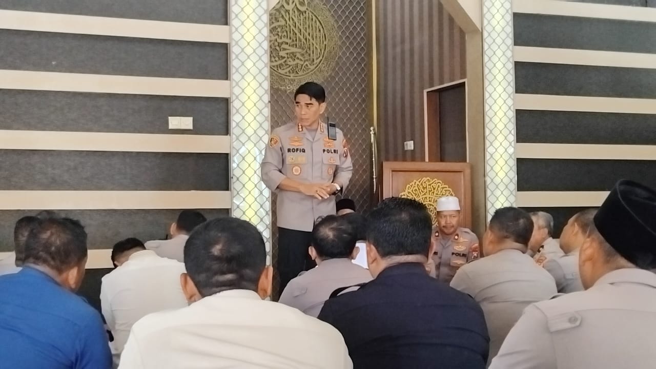 Usai sholat, Kapolresta Banyuwangi yang baru, Kombes Pol. Dr. Rofiq Ripto Himawan, menyampaikan tausiah singkat di hadapan para jamaah. Ia menekankan bahwa sholat lima waktu bukan sekadar kewajiban ritual, melainkan pondasi moral, disiplin, dan pengendalian diri bagi setiap anggota Polri.