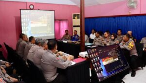 Paparan Kabag Ops Polresta Banyuwangi Kompol Idham Kholid S.H., M.H. tentang laporan situasi kamtibmas dan rincian laporan kinerja satfung dan Polsek jajaran. Kompol Idham juga menjelaskan point penting kesiapan pengamanan Pilkada serentak 2024 yang dilaksanakan di Wilayah Banyuwangi serta persiapan menyambut Hari Bhayangkara ke 78. “Agar Kapolsek mengelola kamtibmas di wilayahnya pasca pemilu dan tengah berjalannya tahapan pilkada dengan meningkatkan kegiatan cooling sistem sehingga dapat meminimalisir adanya guantibmas dan menekan terjadinya polarisasi,” Tegas Kompol Idham Kholid.(*)