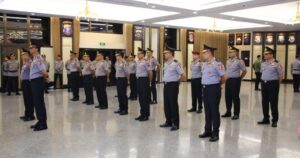 Jakarta, – Kapolri Jenderal Listyo Sigit Prabowo memimpin Korps Raport atau upacara kenaikan pangkat 16 perwira tinggi (pati) di Rupattama, Mabes Polri, Kamis (15/8/2024).