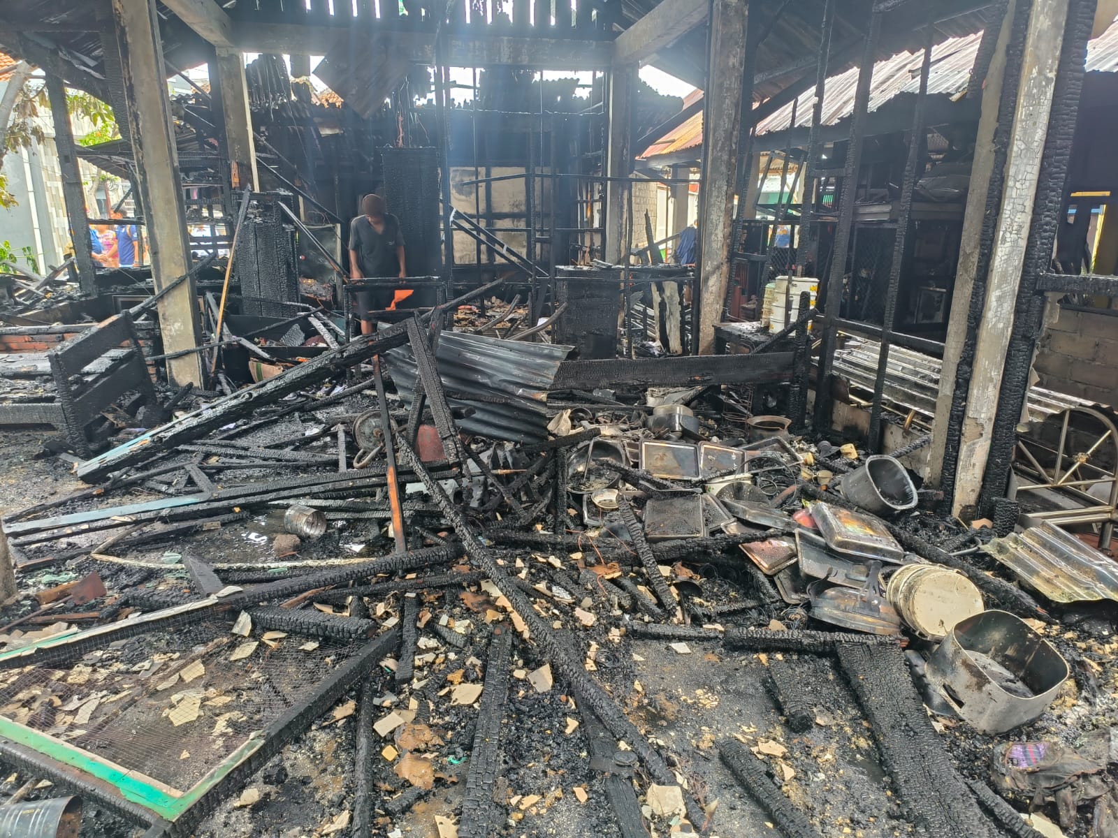 Menurut keterangan warga sekitar, api pertama kali terlihat muncul dari bagian atap bangunan, kemudian dengan cepat menjalar karena mayoritas struktur bangunan terbuat dari material kayu. Warga juga sempat mendengar suara letupan keras, yang diduga berasal dari sepeda motor Supra 125 yang ikut terbakar.