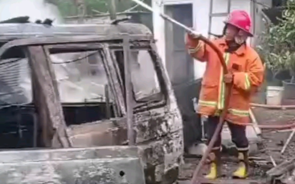 Di dalam garasi, sebuah mobil Kijang Stesen tahun 1990 dan sepeda motor Vario turut hangus terbakar. Petugas Damkar dari sektor Genteng segera tiba di lokasi untuk melakukan penyemprotan dan memastikan tidak ada titik api yang tersisa. Mereka juga melakukan pencarian dan pemadaman bara api yang tersembunyi.
