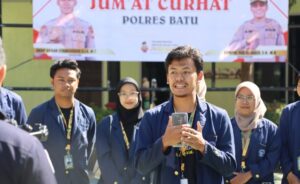 Sementara itu Hasby selaku ketua KKN Mahasiswa dari IPB (Institut Pertanian Bogor) memberikan apresiasi atas program Jum’at Curhat Polres Batu dengan “door to door”.