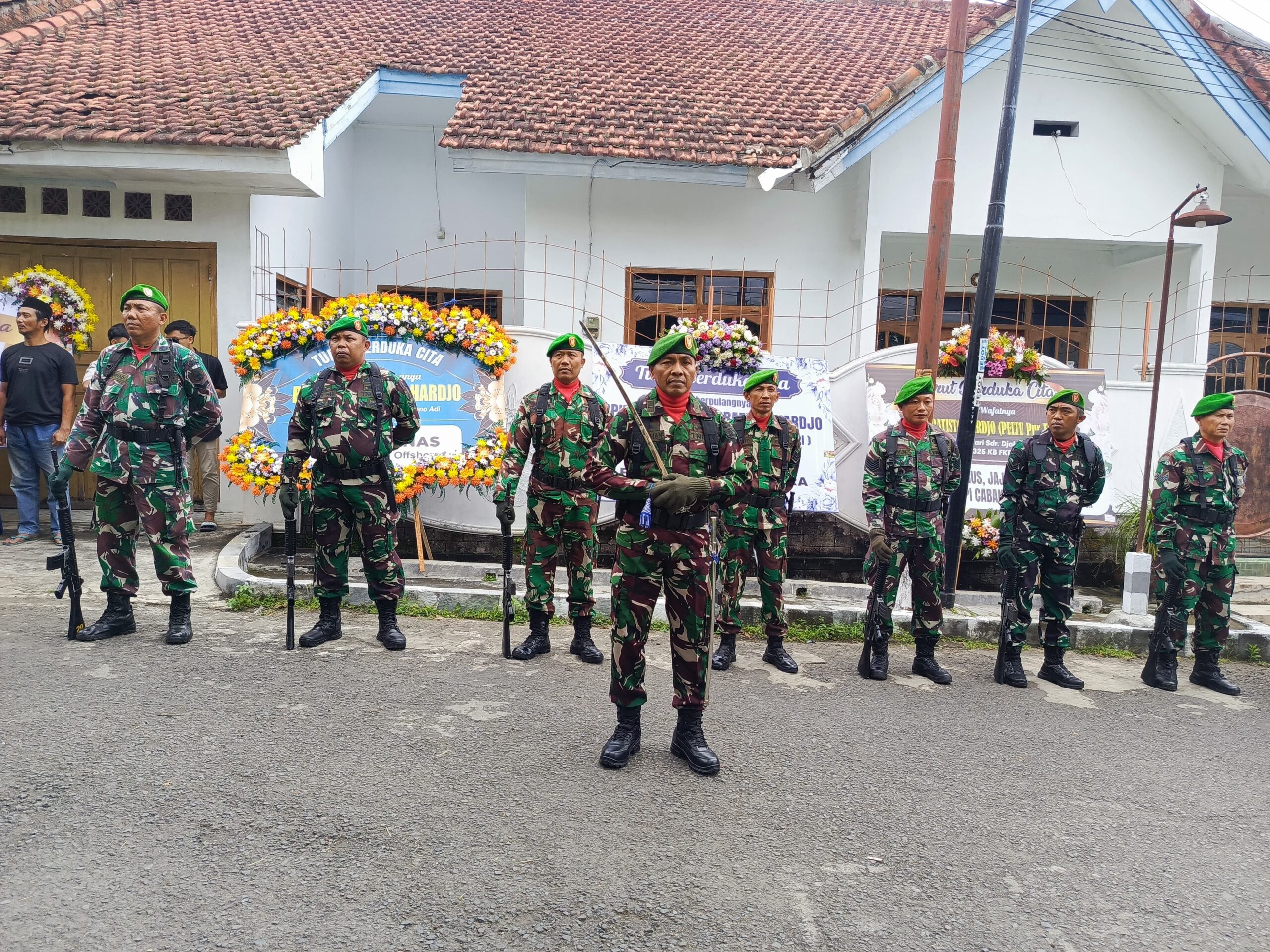 Upacara digelar di rumah duka Perum Kalipuro Asri A153, Kecamatan Kalipuro, sebelum jenazah diberangkatkan menuju Taman Makam Pahlawan (TMP) Wisma Raga Satria, Banyuwangi.