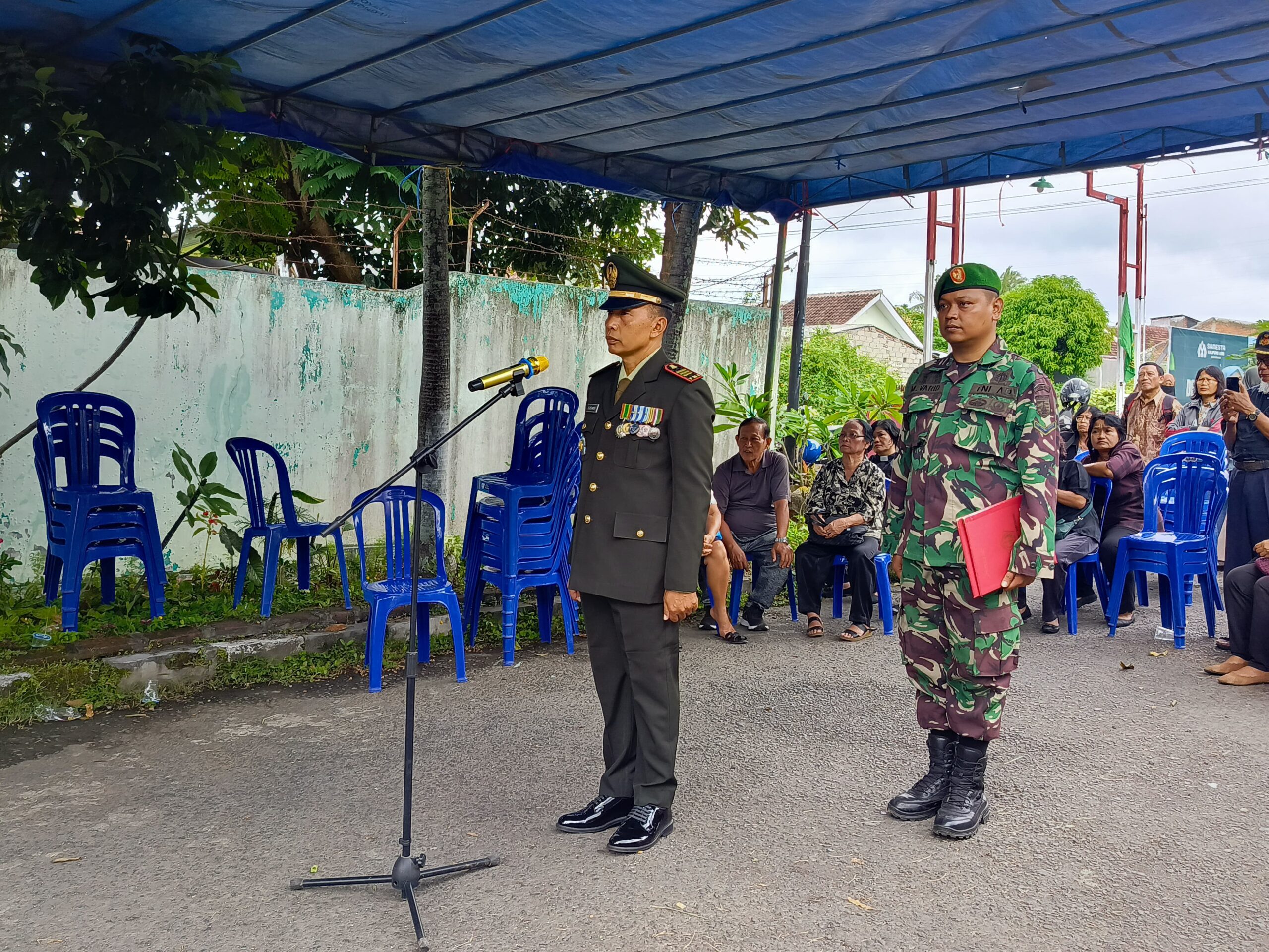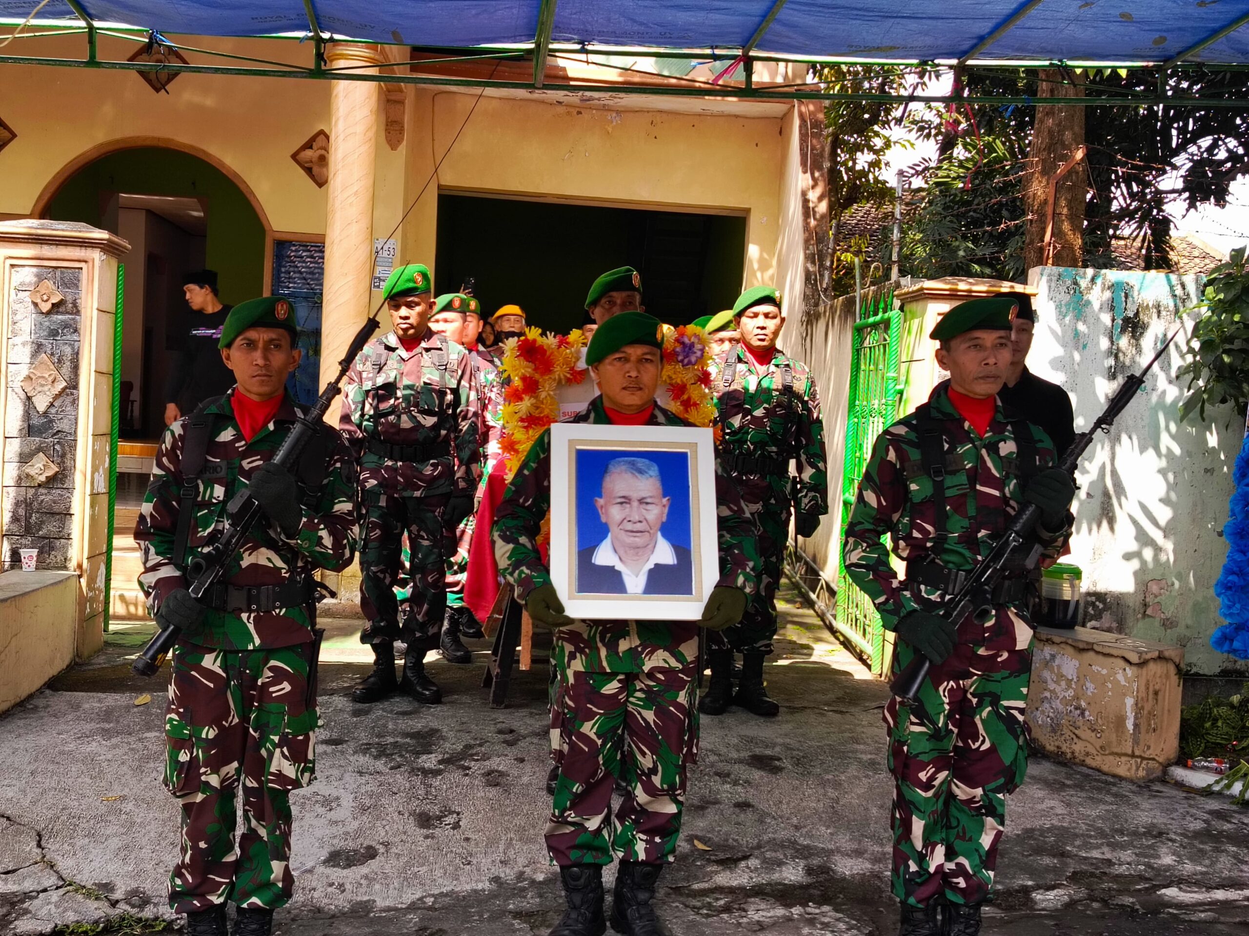 Upacara digelar di rumah duka Perum Kalipuro Asri A153, Kecamatan Kalipuro, sebelum jenazah diberangkatkan menuju Taman Makam Pahlawan (TMP) Wisma Raga Satria, Banyuwangi.