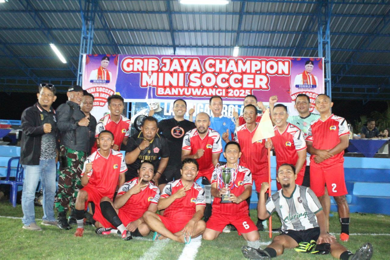 Turnamen Minisoccer Grib Jaya 2025 resmi ditutup pukul 21.00 WIB dengan penyerahan trofi juara kepada Pemkab Banyuwangi dan runner-up kepada Kodim 0825. Selain sebagai ajang olahraga, kegiatan ini digelar untuk meningkatkan sportivitas sekaligus memperkuat sinergi antara Forkopimda dan lembaga masyarakat Banyuwangi. Kehadiran Kodim 0825 sebagai finalis menjadi salah satu penegas bahwa kolaborasi dan kekompakan antarinstansi di Banyuwangi terus terjalin erat melalui kegiatan positif seperti olahraga.