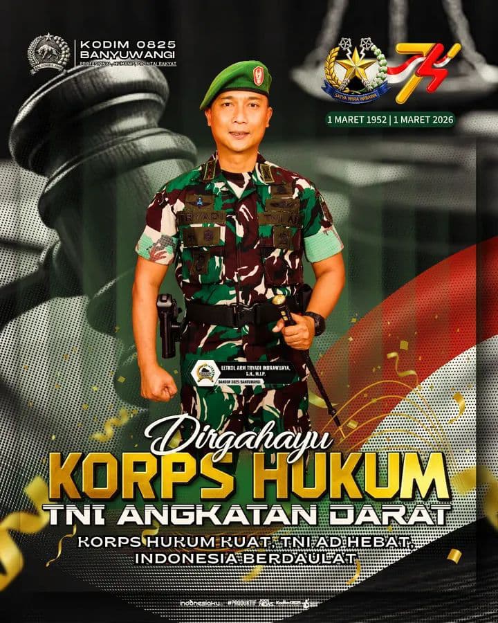 Banyuwangi, Actanews.id  – Komando Distrik Militer (Kodim) 0825 Banyuwangi turut memperingati Dirgahayu ke-74 Korps Hukum TNI Angkatan Darat yang jatuh pada 1 Maret 2026. Peringatan ini menjadi momentum strategis untuk memperkuat komitmen dalam menegakkan hukum, menjaga disiplin prajurit, serta mendorong terwujudnya TNI Angkatan Darat yang profesional dan berintegritas.