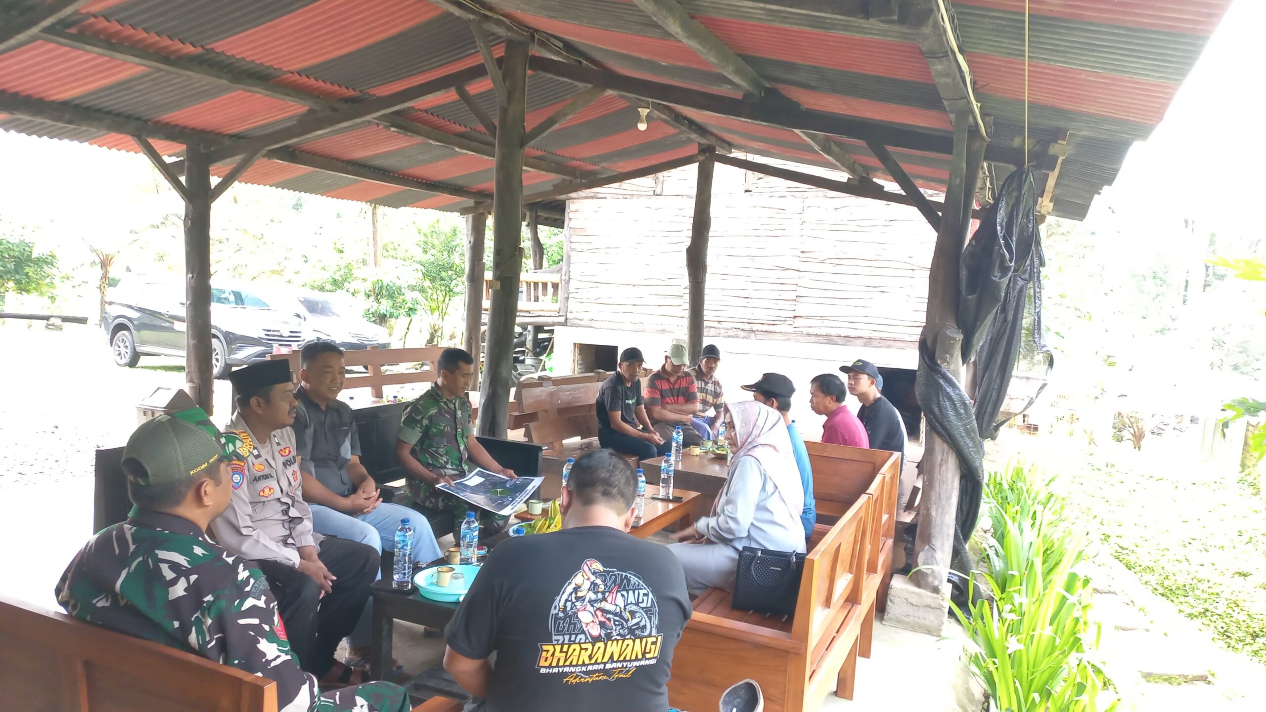 Kegiatan tersebut dipimpin langsung oleh Danramil 0825/20 Songgon, Kapten Inf Totok Yuliyanto, serta dihadiri Kepala Desa Bayu, Yulia Herlia, S.T., Kepala Desa Sumberbulu, Sarengat, perwakilan Asper, Adi, pemilik Wisata Desaku, Luis W., dan aparat Polsek yang diwakili Kanit Binmas Aiptu Anton serta Kanit Intel Aiptu Rudi W. Kehadiran Babinsa Kopka Zarkoni semakin memperkuat peran aktif TNI dalam mendampingi masyarakat.