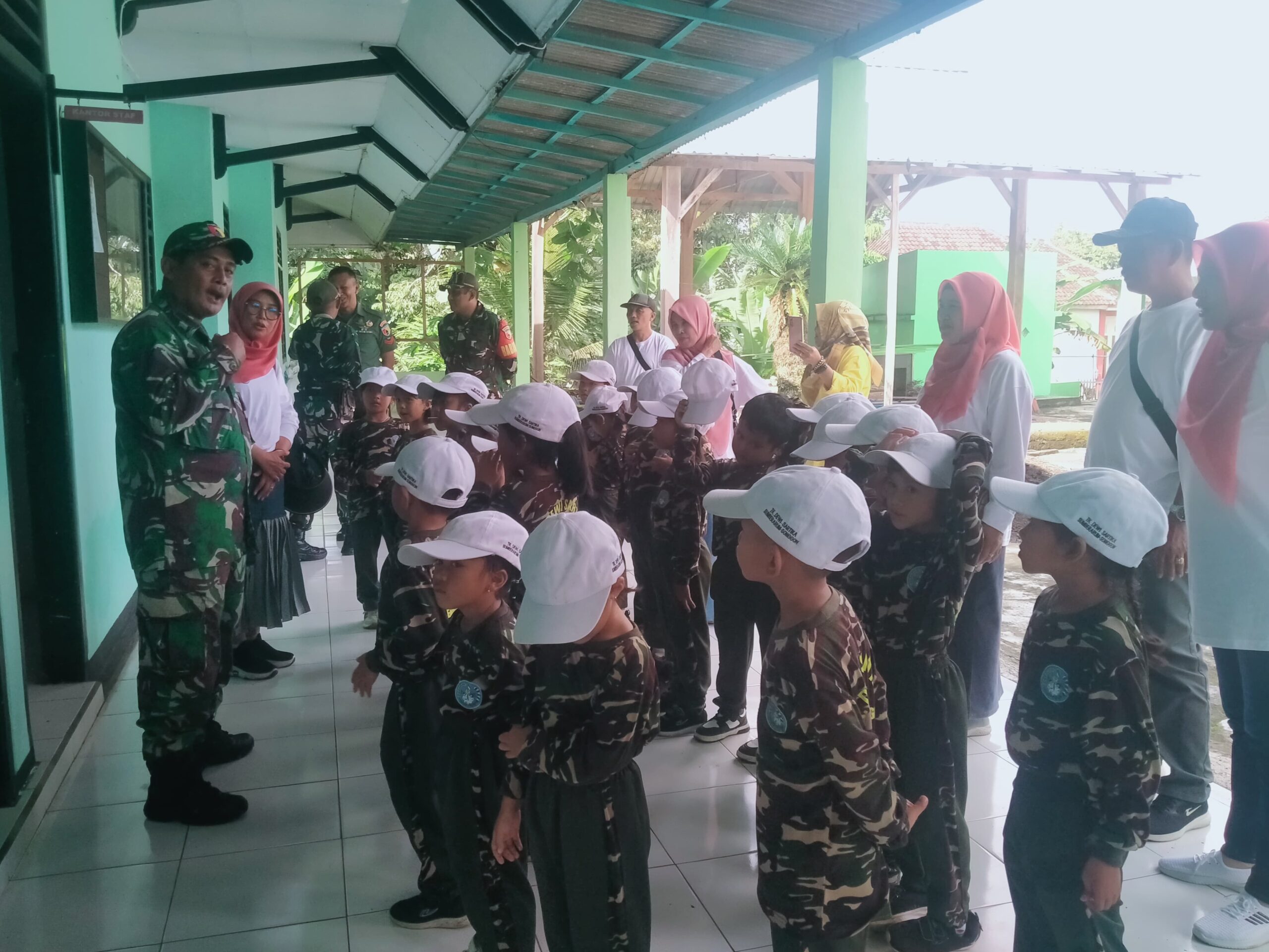 Dalam kesempatan tersebut, para guru pembimbing mengenalkan secara langsung kepada peserta didik tentang profesi tentara serta kantor tempatnya bekerja. Anak-anak tampak antusias menyimak penjelasan dan mengajukan berbagai pertanyaan seputar tugas-tugas TNI.