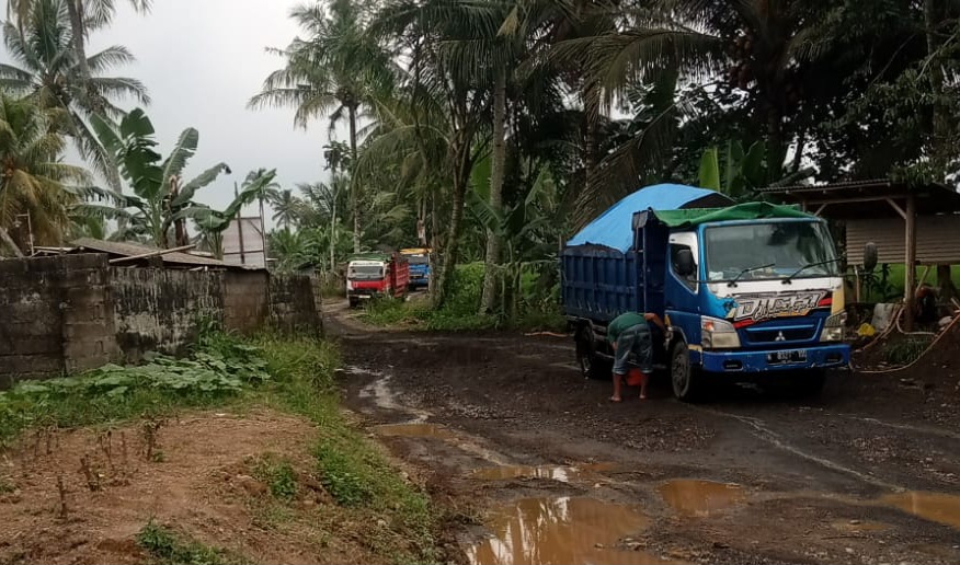 Tidak hanya diduga memanfaatkan lahan pertanian produktif, kegiatan tambang itu juga disinyalir menyebabkan kerusakan serius pada jalan penghubung Desa Parangharjo–Songgon. Jalan tersebut merupakan akses vital bagi mobilitas warga. Akibat intensitas kendaraan bermuatan berat, kondisi jalan kini rusak parah, bergelombang, berlubang, serta licin saat hujan, sehingga membahayakan keselamatan pengguna, terutama pengendara roda dua.