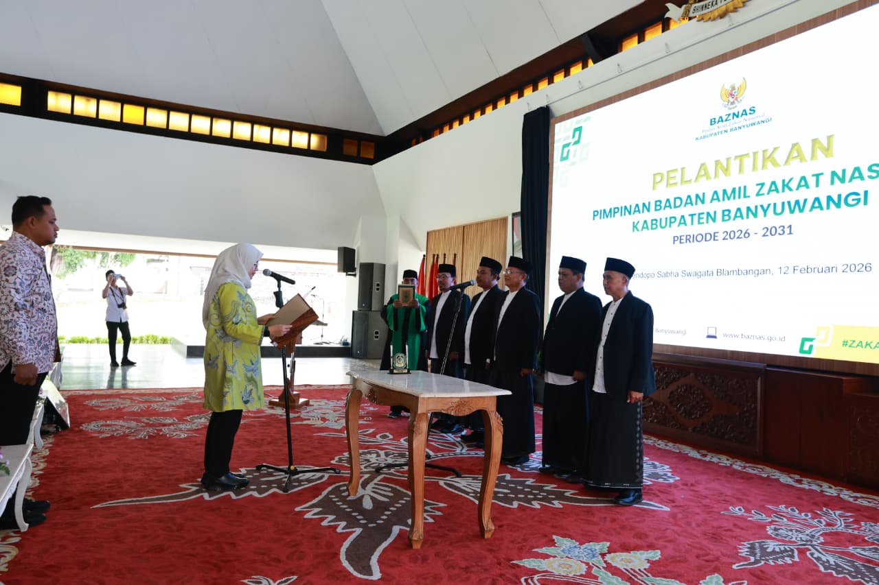 BANYUWANGI, Actanews.id  – Bupati Banyuwangi Ipuk Fiestiandani melantik pimpinan Badan Amil Zakat Nasional (Baznas) Kabupaten Banyuwangi masa bakti 2026-2031, Kamis (12/2/2026). Dwi Yanto mendapatkan amanah sebagai Pimpinan Baznas Banyuwangi yang baru.