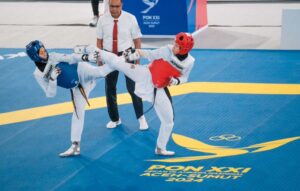 Actanews.id. – Atlet Taekwondo Polri Bripda Rizky Anugrah Prasetyo yang mewakili provinsi Jawa Timur berhasil merebut medali emas pada PON XXI Aceh Sumut.