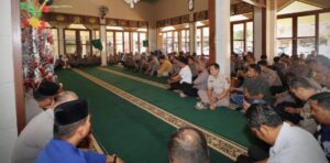 Kapolresta Banyuwangi, Kombes Pol. Nanang Haryono, S.H., S.I.K., M.Si yang diwakili Kabag SDM Kompol Indah Citra yang dihadiri Pejabat Utama (PJU), kapolsek Jajaran dan Anggota Polresta Banyuwangi di masjid Roudhatul jannnah.