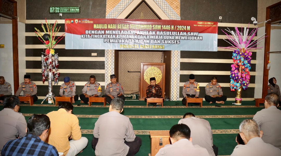 BANYUWANGI, Actanews.id  -Polresta Banyuwangi menggelar Tausiyah dan Doa bersama dalam rangka memperingati Maulid Nabi Muhammad SAW 1446 H/ 2024 M ,Kamis(12/09/2024).