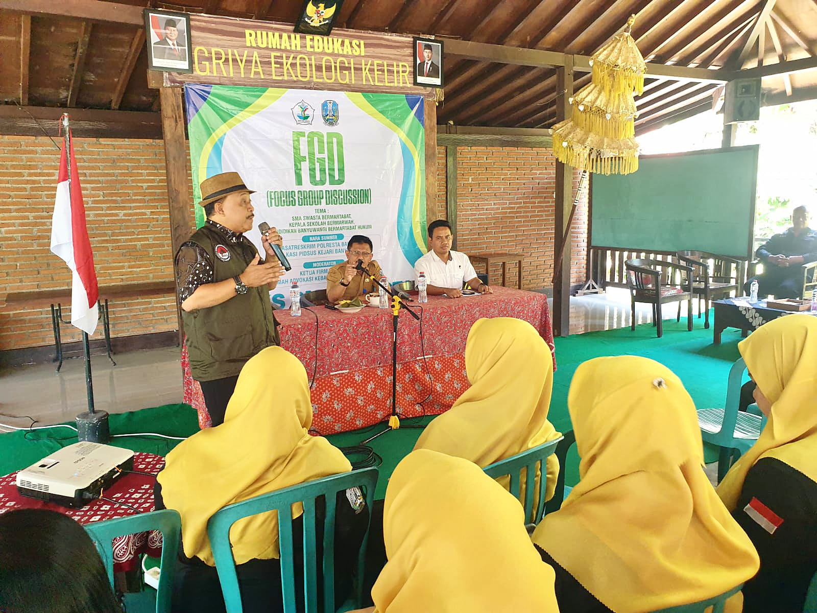 Hadir sebagai narasumber, Iptu Karyono Setyawan, S.H., M.H., Kanit Pidkor Satreskrim Polresta Banyuwangi, serta Drs. Slamet Riyadi, M.Pd., Plt. Kepala Cabang Dinas Pendidikan Provinsi Jawa Timur Wilayah Banyuwangi. Diskusi dipandu oleh Hakim Said, S.H., Ketua Firma Hukum Rumah Advokasi Kebangsaan Banyuwangi (RAKB).