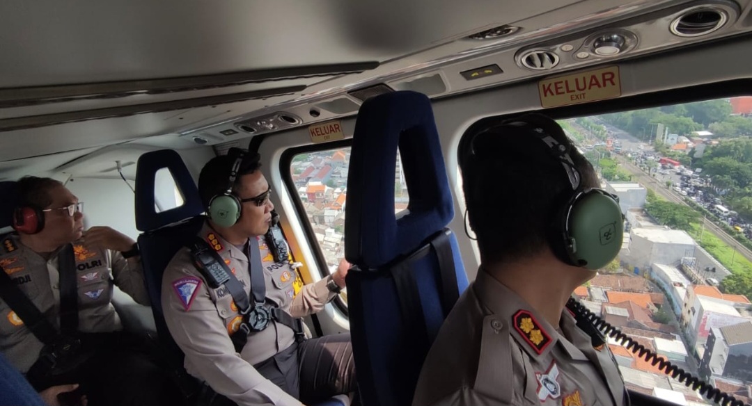 SURABAYA, Actanews.id – Direktur Lalulintas (Dirlantas) Polda Jawa Timur Kombes Pol Komarudin bersama jajaran Satlantas Polda Jatim, Sabtu)(6/4/2024) melakukan pantauan udara menggunakan helikopter di sejumlah titik rawan kemacetan, di Jawa Timur, Sabtu (5/4).