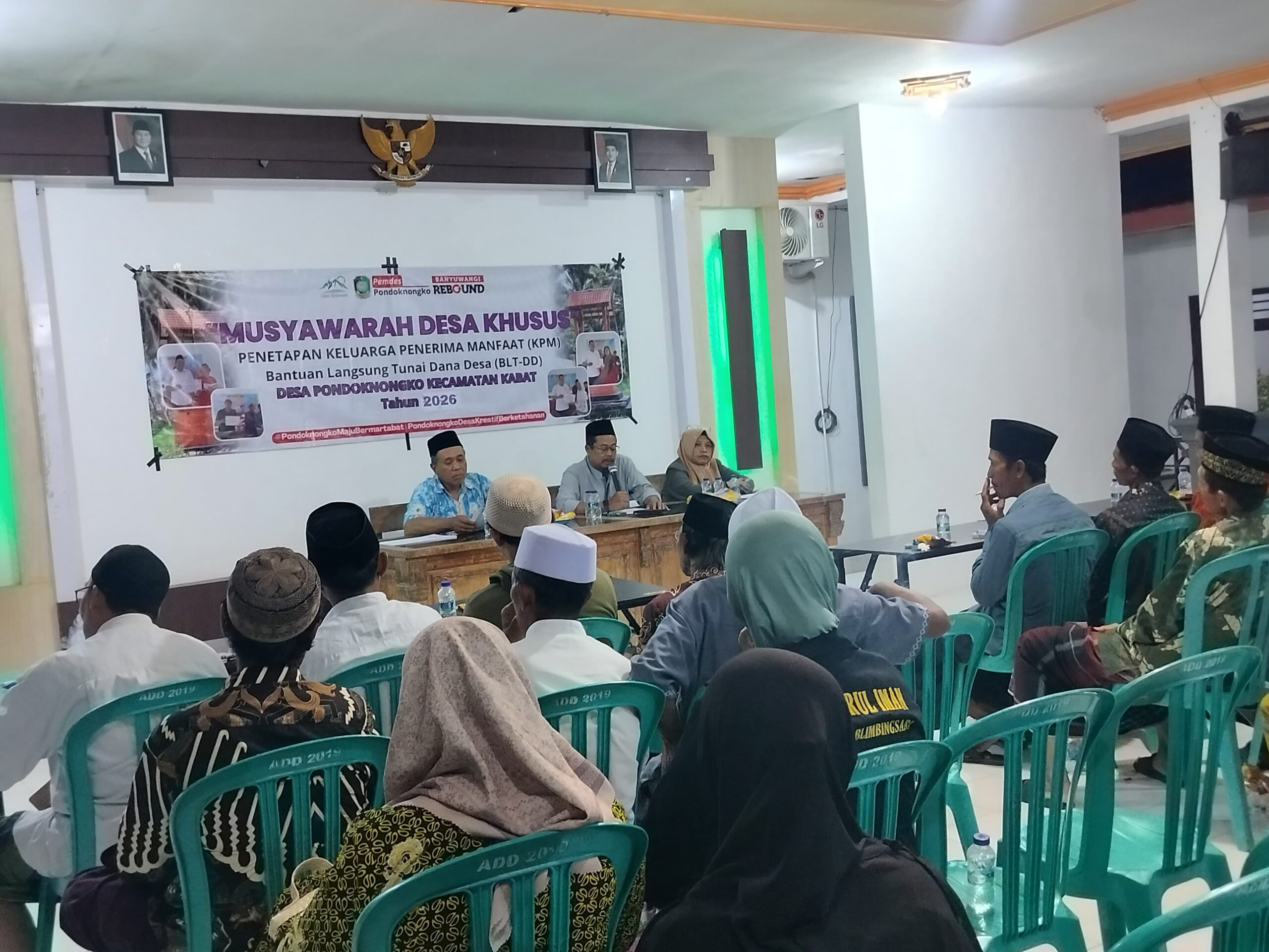 Banyuwangi, Actanews. Id – Pemerintah Desa Pondoknongko Kecamatan Kabat Kabupaten Banyuwangi menggelar rapat penting dalam rangka penetapan Keluarga Penerima Manfaat (KPM ) sekaligus penentuan penerima Bantuan Langsung Tunai ( BLT ) dan Dana Desa ( DD ) tahun 2026. Jumat 6 Maret 2026. Malam.