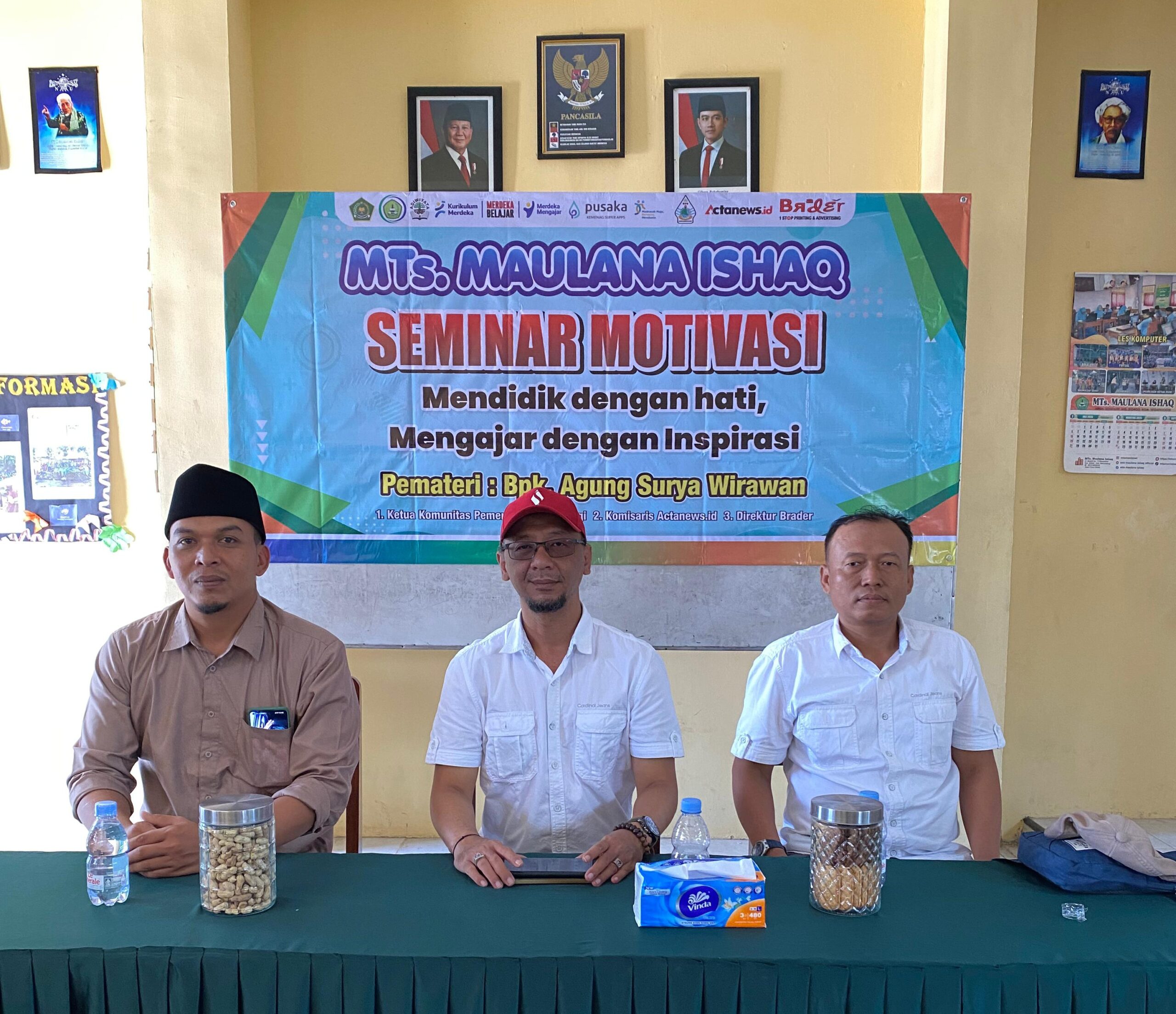 BANYUWANGI, Actanews.id — MTs Maulana Ishaq, Benelan Lor, Kecamatan Kabat, menggelar seminar motivasi bertema “Mendidik dengan Hati, Mengajar dengan Inspirasi” bagi seluruh dewan guru dan staf, Sabtu (29/11/2025). Kegiatan ini menjadi bagian dari upaya madrasah dalam memperkuat pendidikan karakter serta meningkatkan kualitas pendidik.