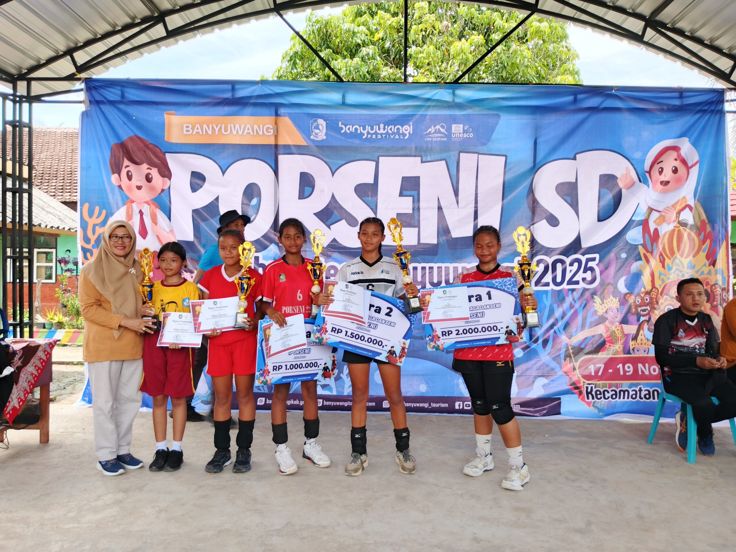 Pelaksanaan porseni tingkat SD se-Kabupaten Banyuwangi yang dipusatkan di Desa Pelampang Rejo dari hari Selasa sampai Rabu, 19 November 2025, berlangsung dengan sukses dan penuh antusias. Para siswa menunjukkan potensi seni yang membanggakan, sedangkan para guru serta panitia bekerja sama dengan baik untuk menghadirkan kegiatan yang edukatif dan inspiratif. Acara ini tidak hanya menampilkan bakat, tetapi juga memperkuat karakter dan rasa percaya diri peserta didik.