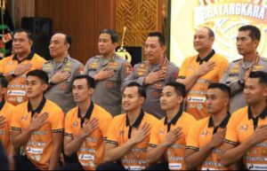 Actanews.id – Kapolri Jenderal Pol Listyo Sigit Prabowo didampingi Irwasum Polri Komjen Pol Ahmad Dofiri, Kabareskrim Polri Komjen Pol Wahyu Widada, Asisten Kapolri Bidang SDM Irjen Pol Dedi Prasetyo serta Kadiv Humas Polri Irjen Pol Sandi Nugroho menyambut tim voli Jakarta Bhayangkara Presisi dan Popsivo Polwan yang dipimpin Manajer tim Irjen Pol Pipit Rismanto, Rabu malam (07/08/2024) di Rupatama, Mabes Polri, Jakarta selatan.