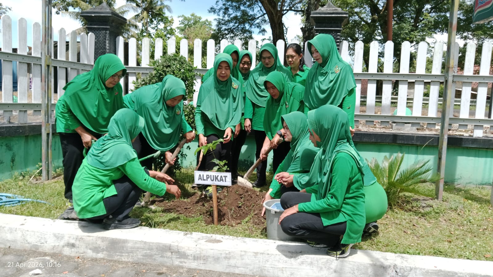 Dalam suasana penuh kebersamaan, para anggota Persit melakukan penanaman berbagai jenis pohon pelindung dan tanaman produktif. Kegiatan ini menjadi bentuk nyata kepedulian terhadap kelestarian lingkungan sekaligus upaya menciptakan suasana kantor yang lebih hijau, asri, dan nyaman.