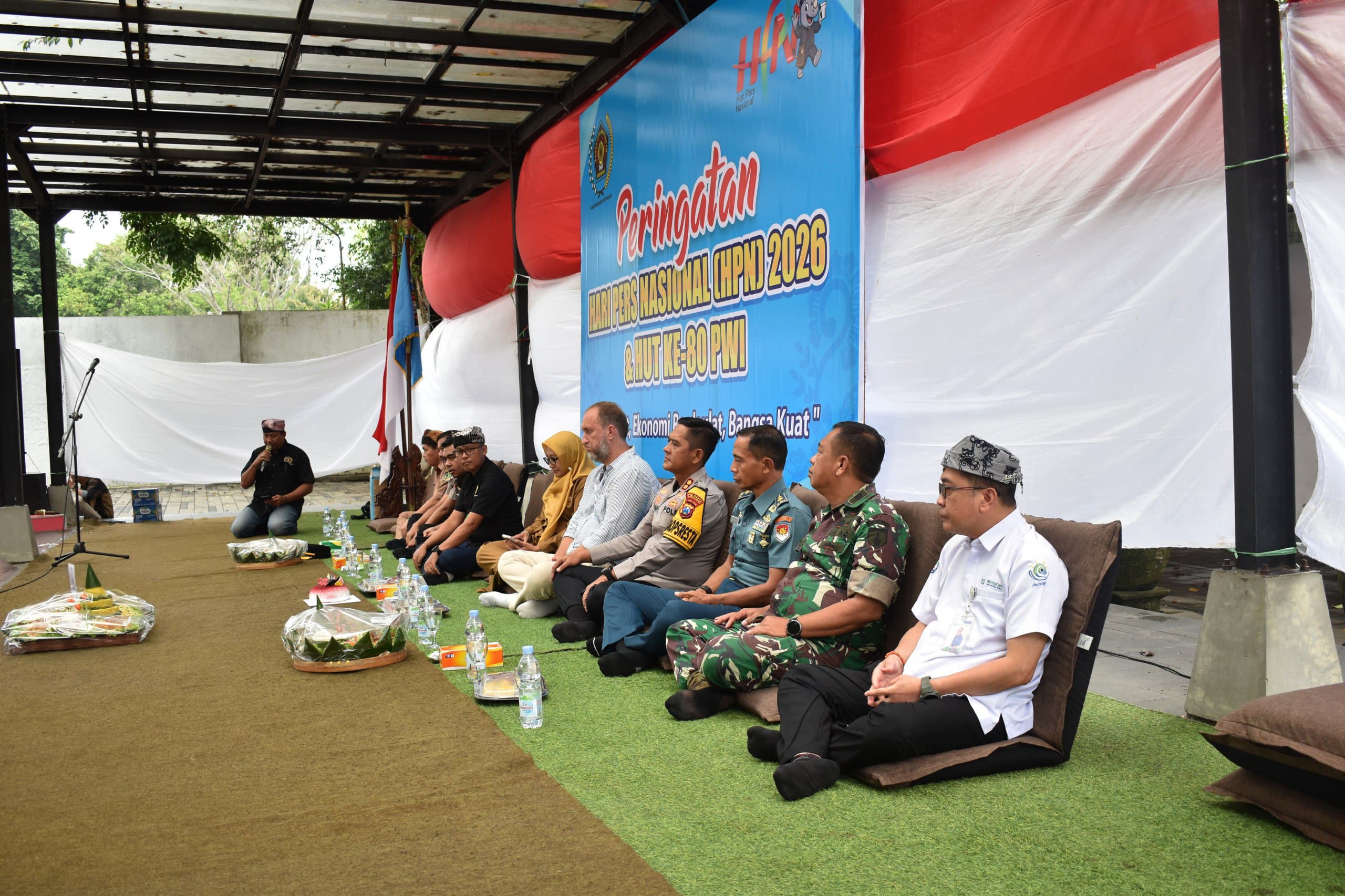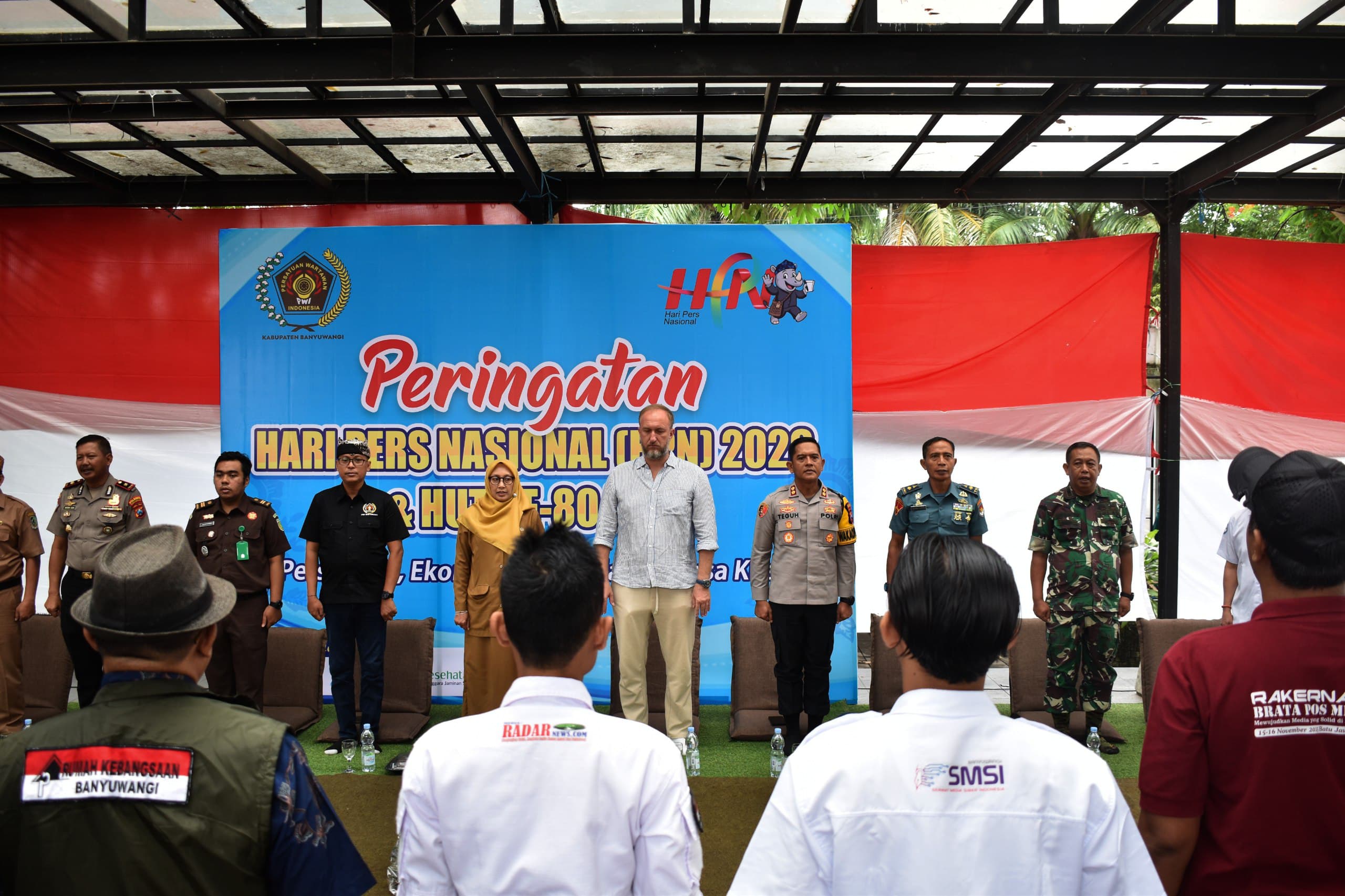 Dandim 0825 Banyuwangi yang diwakili Kasdim Mayor Kav Suprapto turut hadir bersama Palaksa Lanal Banyuwangi Mayor Mar I Nyoman Suarmika, Wakapolresta Banyuwangi AKBP Teguh Priyo Wasono, Sekretaris Dinas Kominfo Rahmawati Setyarini, Ketua PWI Banyuwangi Budi Wiriyanto, serta perwakilan instansi dan komunitas lainnya. Acara dimulai pukul 09.40 WIB dengan menyanyikan Indonesia Raya dan Mars PWI, dilanjutkan sambutan para pejabat yang menegaskan peran strategis pers sebagai pilar demokrasi dan pengawal pembangunan daerah.