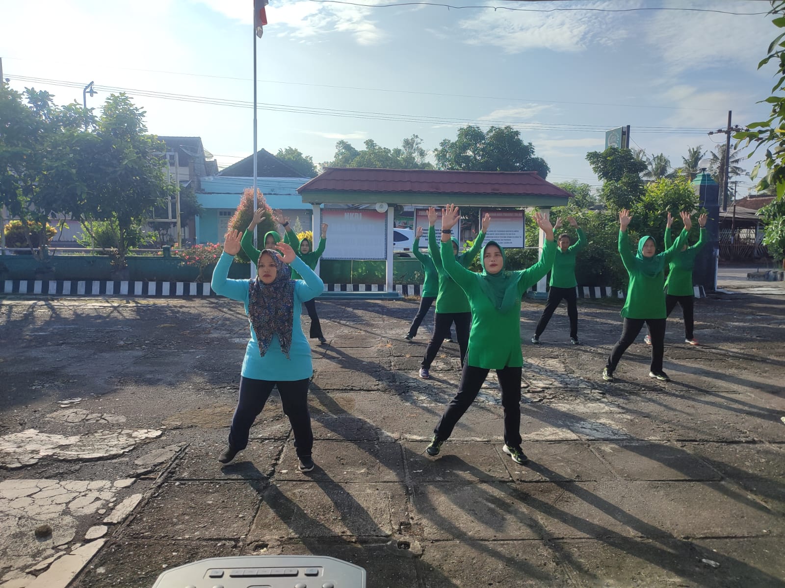 Kegiatan senam bersama ini dilaksanakan oleh seluruh anggota persit Koramil di halaman Makoramil Purwoharjo