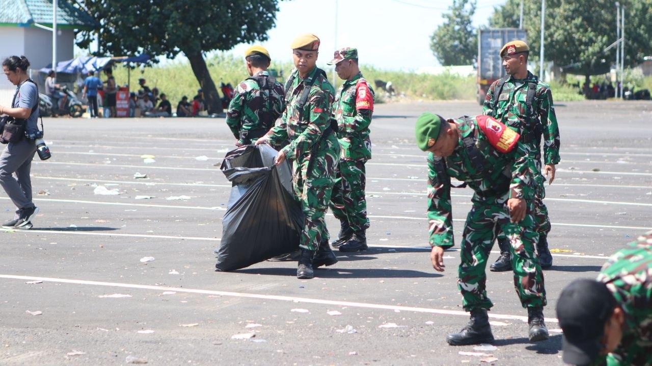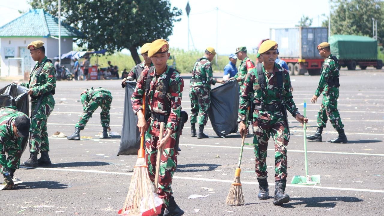 BANYUWANGI, Actanews.id – Personel Kodim 0825/Banyuwangi melaksanakan kegiatan gotong royong pembersihan di kawasan Pelabuhan Bulusan, Kecamatan Kalipuro, Minggu (5/4/2026). Aksi ini dilakukan sebagai upaya menjaga kebersihan lingkungan sekaligus mendukung kelancaran arus mudik di jalur penyeberangan yang menjadi salah satu titik vital mobilitas masyarakat. Kegiatan tersebut melibatkan prajurit yang turun langsung membersihkan area pelabuhan dari sampah dan kotoran yang berpotensi mengganggu kenyamanan pengguna jasa.
