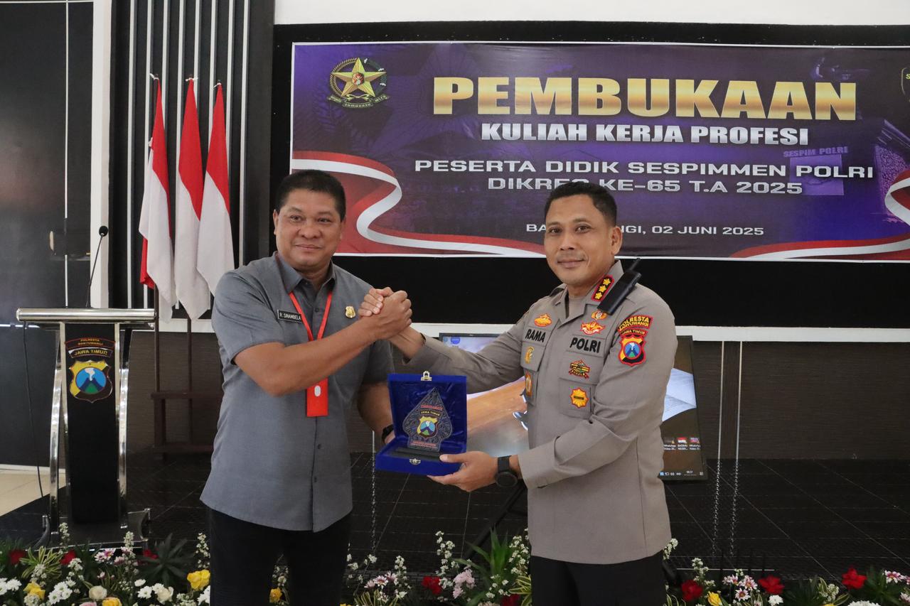 Banyuwangi, Actanews.id  –  Polresta Banyuwangi menerima kunjungan peserta didik Sekolah Staf dan Pimpinan Menengah (Sespimmen) Polri Dikreg ke-65 Gelombang I Tahun Anggaran 2025 dalam rangka pelaksanaan Kuliah Kerja Profesi (KKP), Senin (2/6/2025).