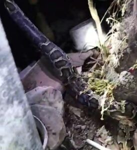 “Saya melihat ada sesuatu yang bergerak di pekarangan dan setelah diperiksa, ternyata ular Python besar sedang memangsa seekor kucing. Saya langsung melaporkan kejadian ini ke Damkarmat,” ujar Muhamad.