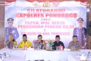 PONOROGO, Actanews.id – Polres Ponorogo Polda Jatim menggelar silaturahmi dengan Forum Komunikasi Pencak Silat dan Bela Diri (FKPSB), Ikatan Pencak Silat Indonesia (IPSI), serta para ketua perguruan pencak silat dan bela diri se-Kabupaten Ponorogo Jawa Timur.