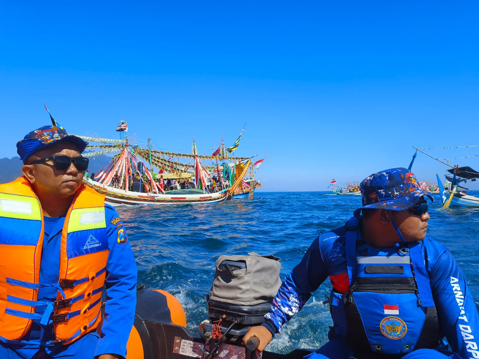 Kegiatan tradisi larung sesaji ke laut tersebut dipimpin langsung oleh Kasat Polairud Polres Situbondo AKP Gede Sukarmadiyasa, S.H., M.H., bersama personel gabungan dari TNI AL, Polsek Panarukan, dan BPBD Situbondo.
