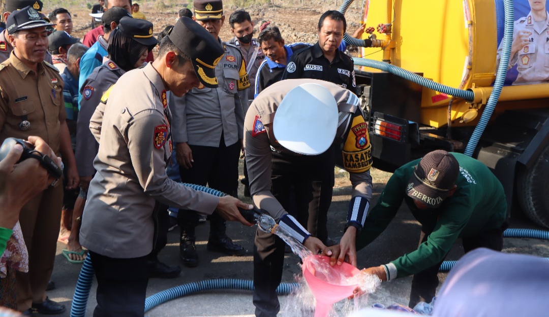 Pendistribusian air bersih dipimpin langsung oleh Kapolres Tuban AKBP Oskar Syamsuddin, S.I.K., M.T., didampingi para pejabat utama Mapolres setempat, Selasa (13/08/2024)
