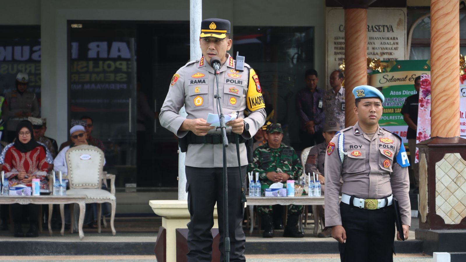 Apel gelar pasukan tersebut dipimpin langsung oleh Kapolresta Banyuwangi Kombes Pol. Dr. Rama Samtama Putra, S.I.K., M.Si., M.H., dan dihadiri Bupati Banyuwangi Hj. Ipuk Fiestiandani, S.Pd., M.KP., Komandan Lanal Banyuwangi yang diwakili Palaksa Mayor (Mar) I Nyoman Suarmika, Dandim 0825 Banyuwangi Mayor (Kav) Suprapto, Pejabat Utama (PJU) Polresta Banyuwangi, Kapolsek jajaran, tokoh agama, tokoh masyarakat, serta para stakeholder terkait.