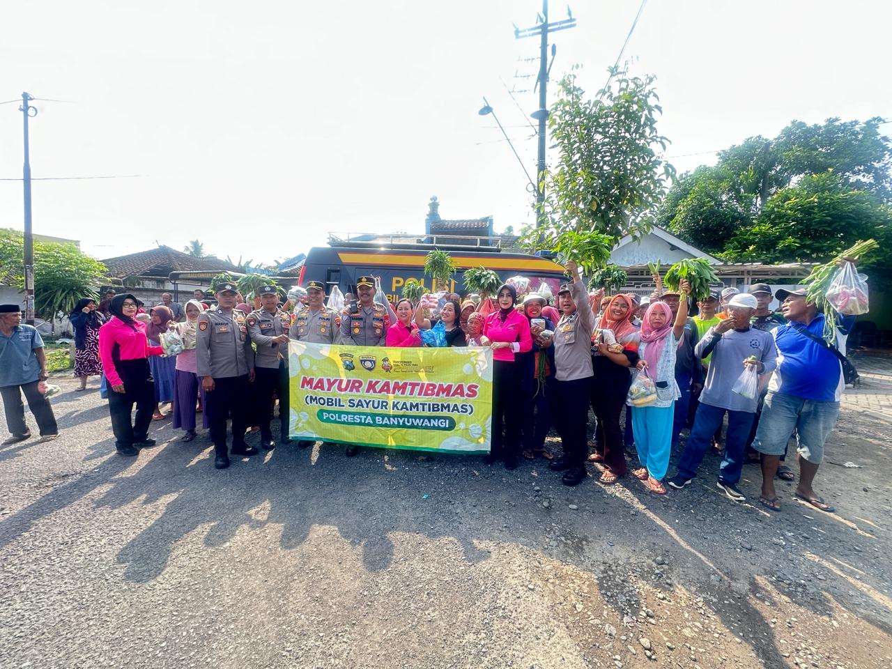 Dalam kegiatan Mayur Kamtibmas tersebut, Polresta Banyuwangi membagikan berbagai kebutuhan pokok dan hasil pertanian kepada warga secara gratis.