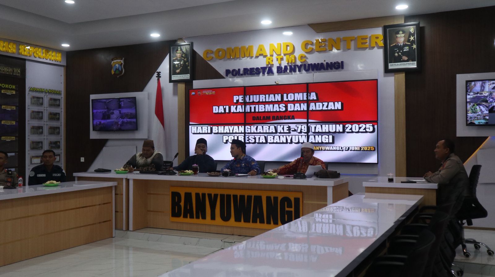 Banyuwangi Actanews.id — Polresta Banyuwangi menggelar kegiatan penjurian lomba Da’i Kamtibmas dan Adzan dalam rangka memperingati Hari Bhayangkara ke-79 tahun 2025. Penjurian dilaksanakan pada Selasa (17/6/2025) bertempat di Command Center Mapolresta Banyuwangi.
