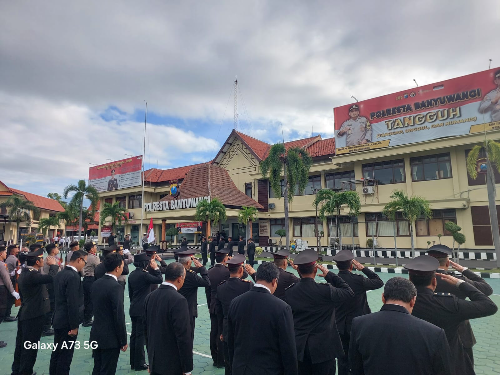 Upacara dilangsungkan di halaman Mapolresta dan dipimpin oleh Wakapolresta Banyuwangi, AKBP Teguh Priyo Wasono, S.I.K.